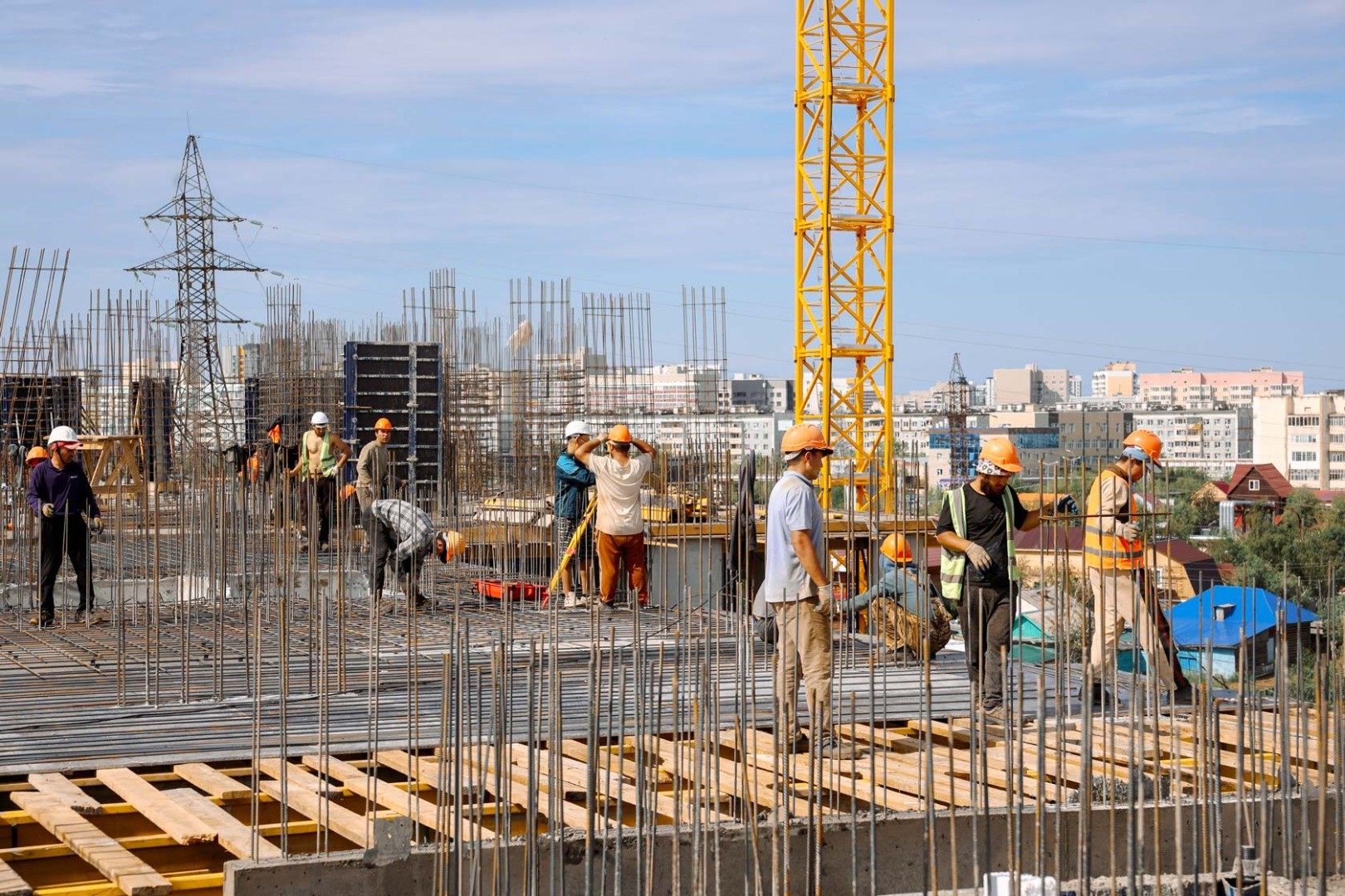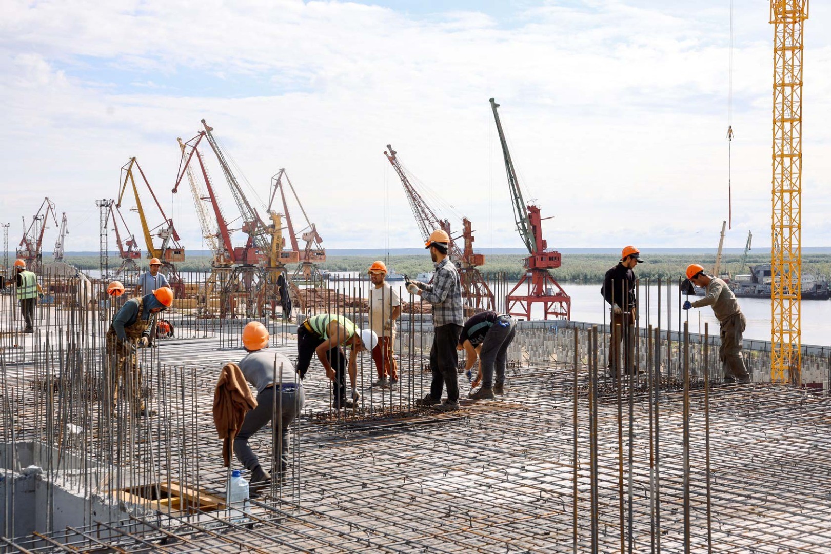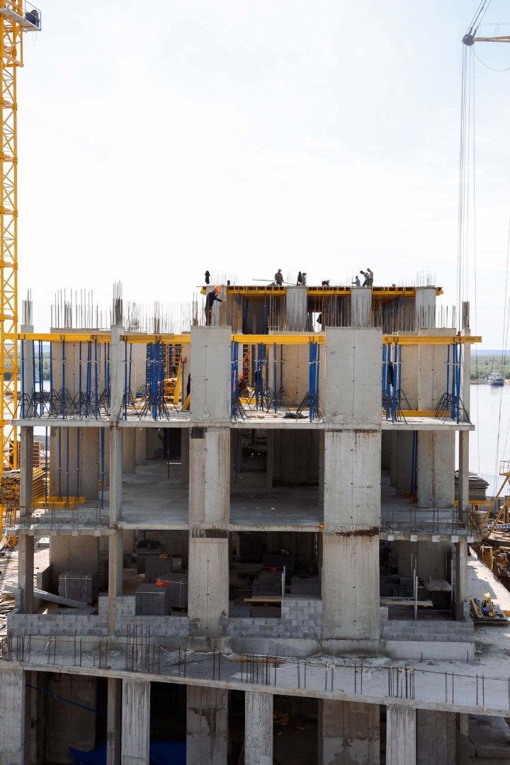 В июле на строительной площадке жилого квартала «Ленские высоты» продолжаются активные работы. Ведётся армирование ключевых конструктивных элементов на двух корпусах — Дом 1 и Дом 9.