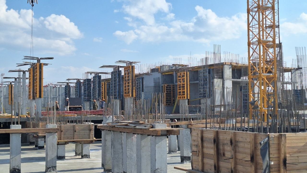 • А также продолжаются работы по устройству пилонов 1-го этажа и плит перекрытий 2-го этажа на Секции 1.