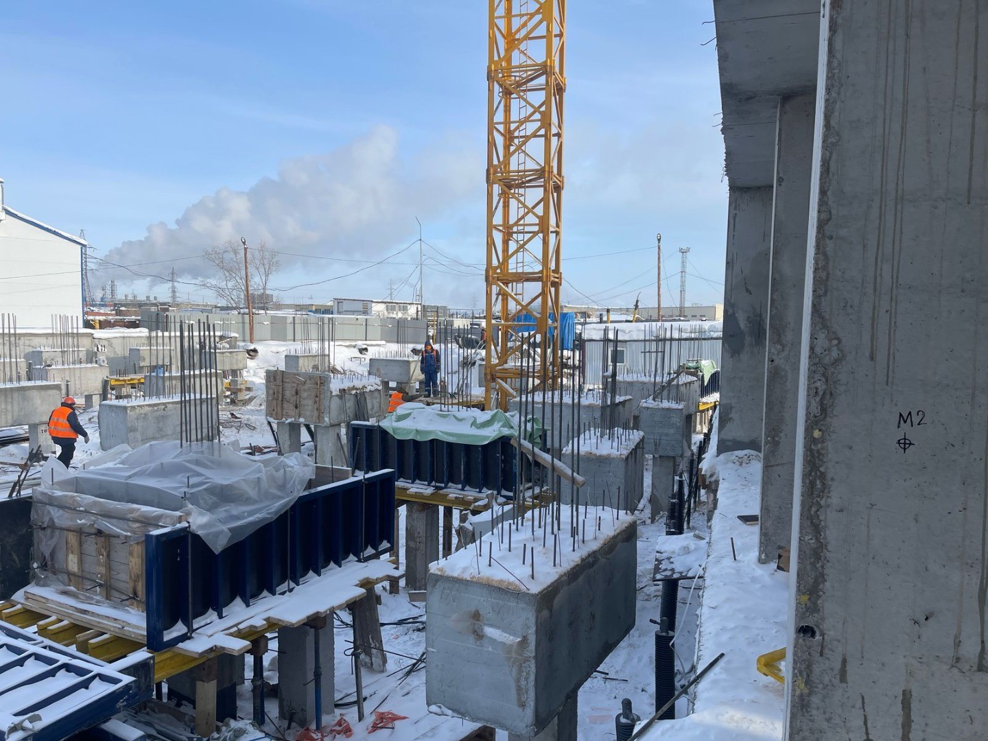 - Проводим работы по армированию, устройству опалубки и подготовке к приему бетона в пилоны Секции 4 (с применением электропрогрева бетона).