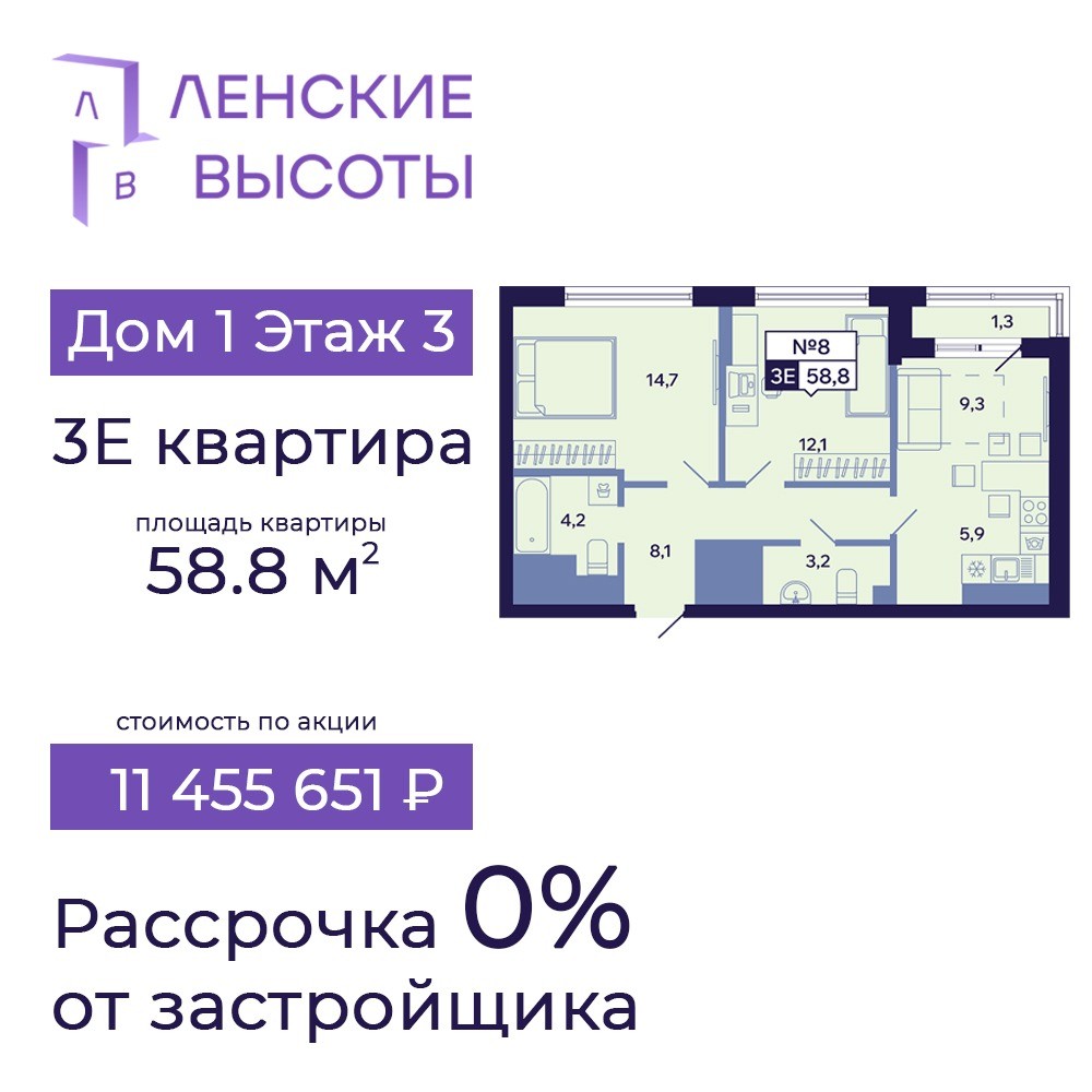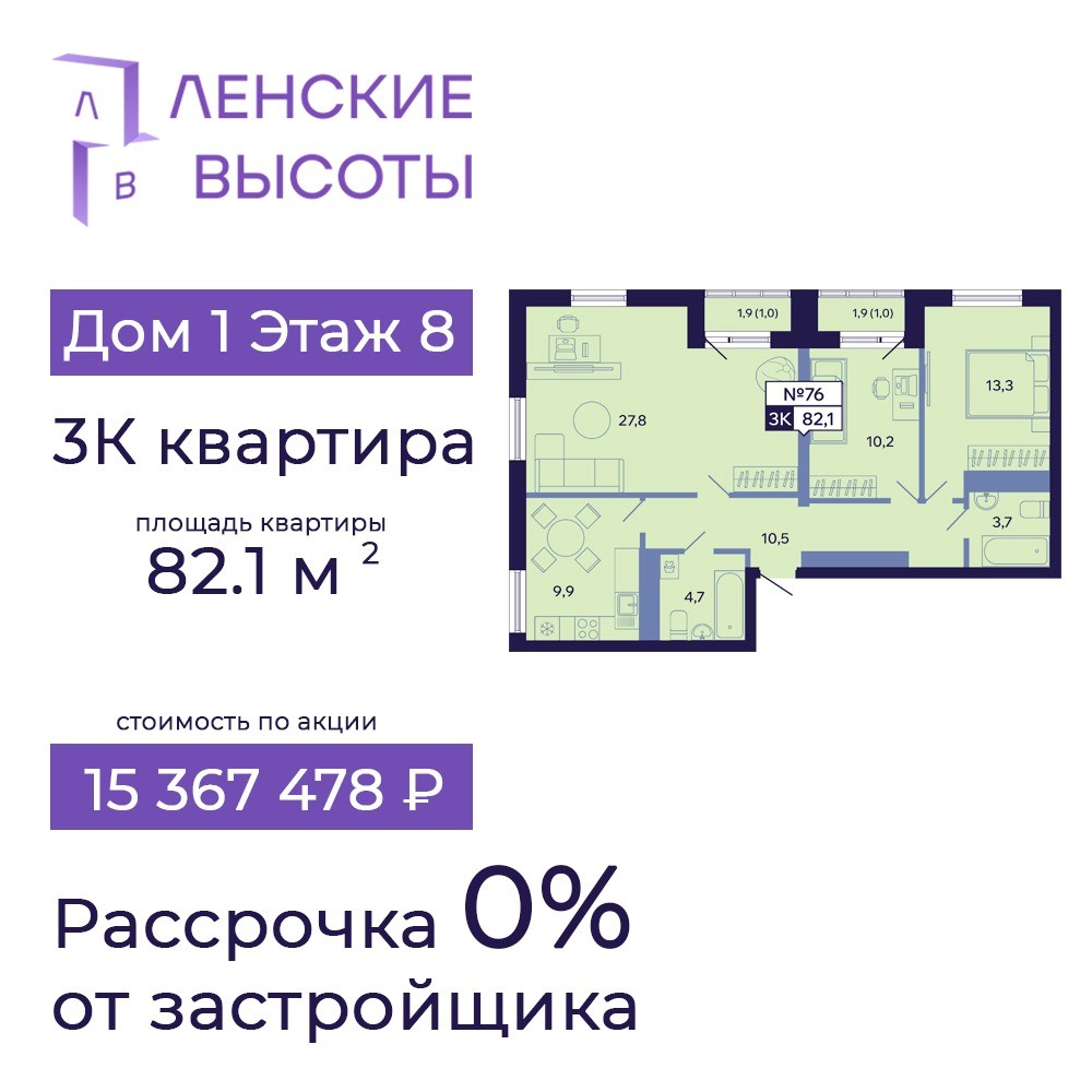 🔥 Только до 25 марта 2025 года у вас есть возможность купить семейные 2- и 3-комнатные квартиры в ЖК «Ленские высоты» с беспроцентной рассрочкой от застройщика!