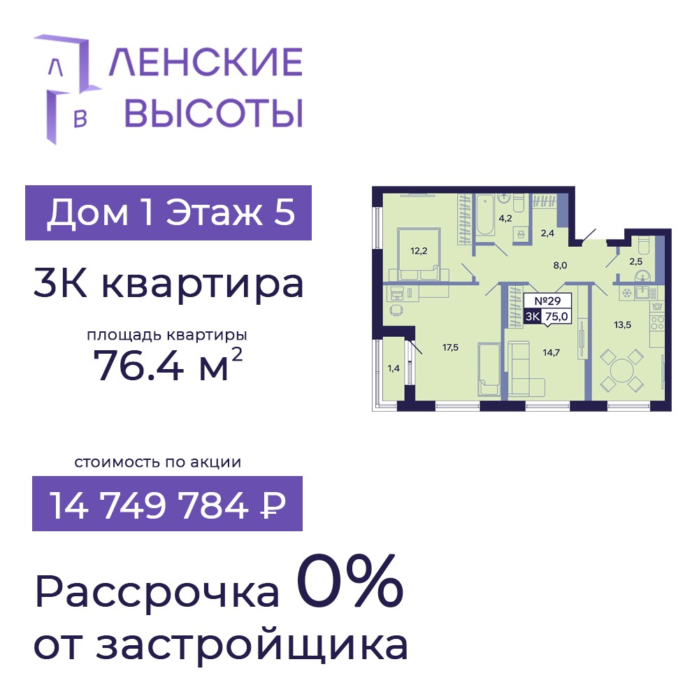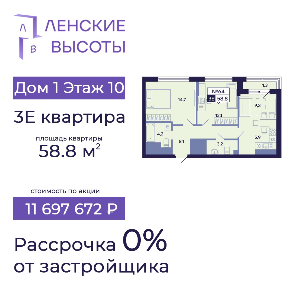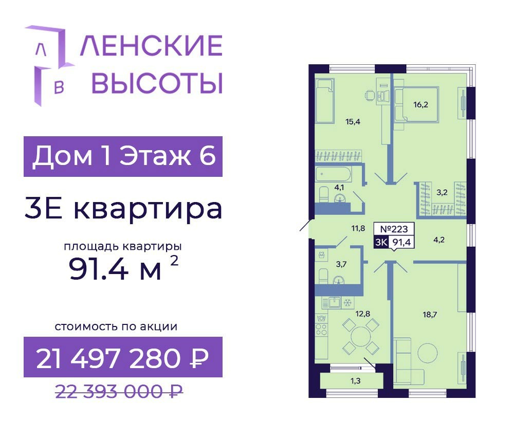 Трехкомнатные квартиры в ЖК "Ленские высоты"