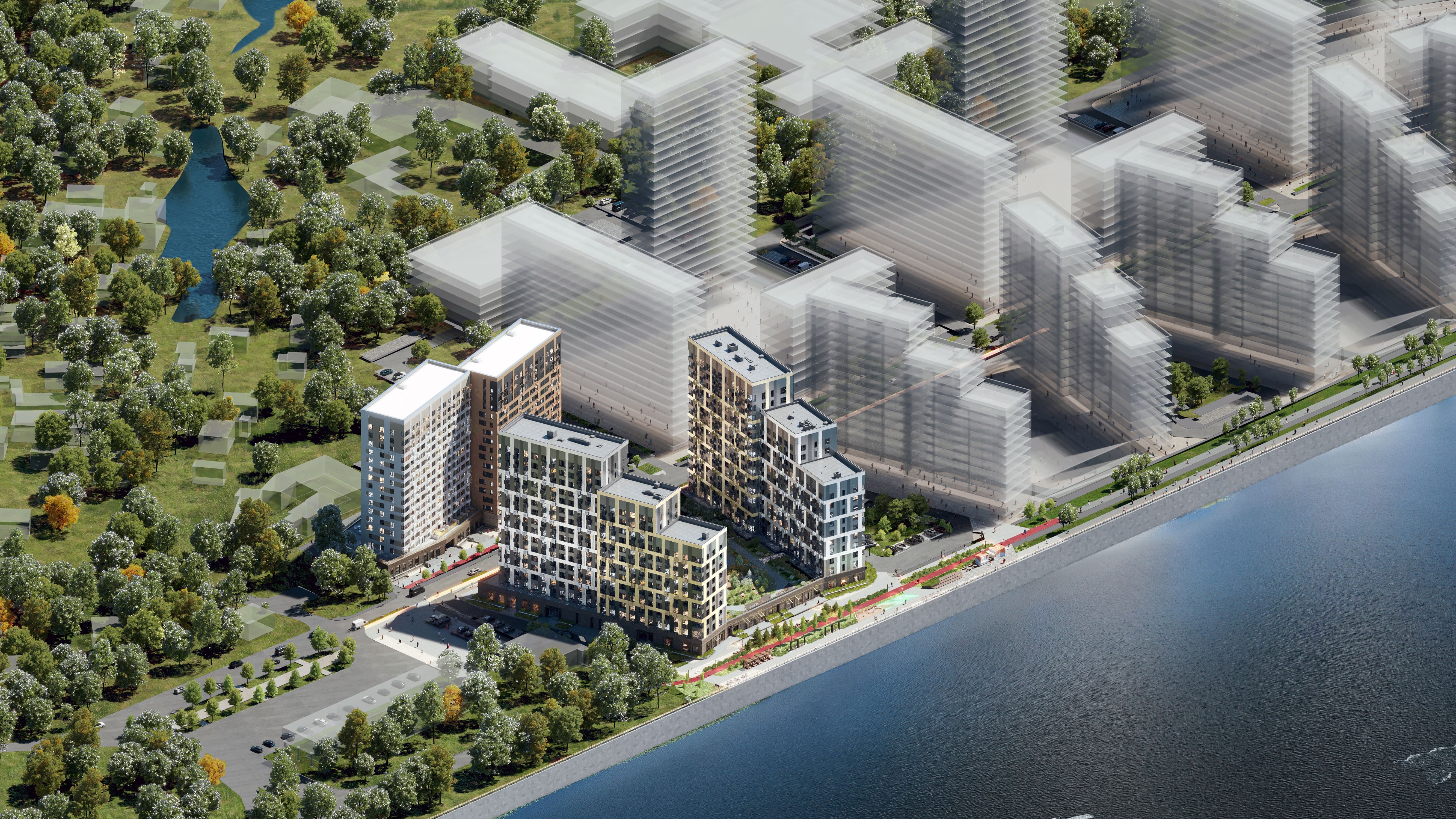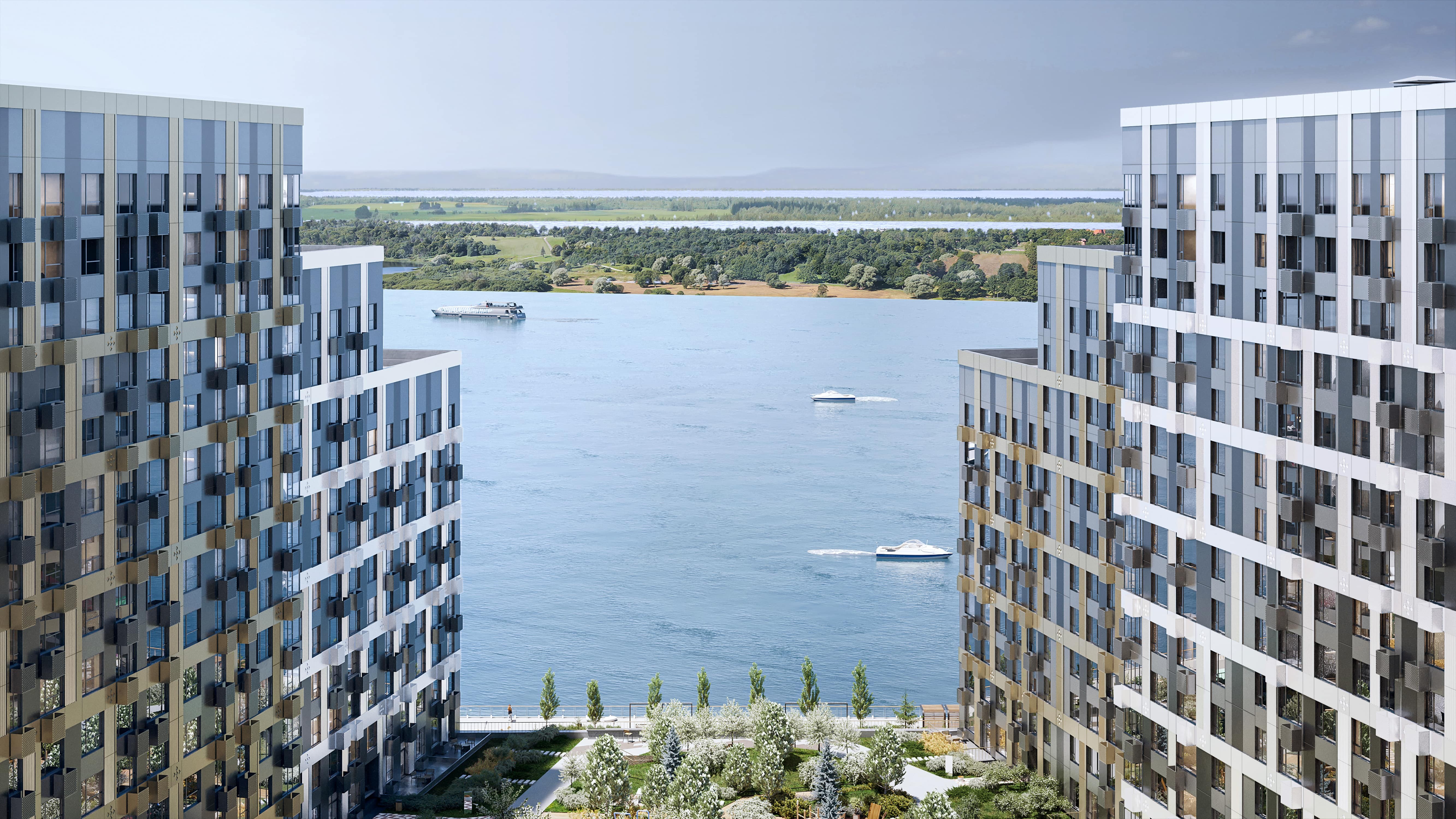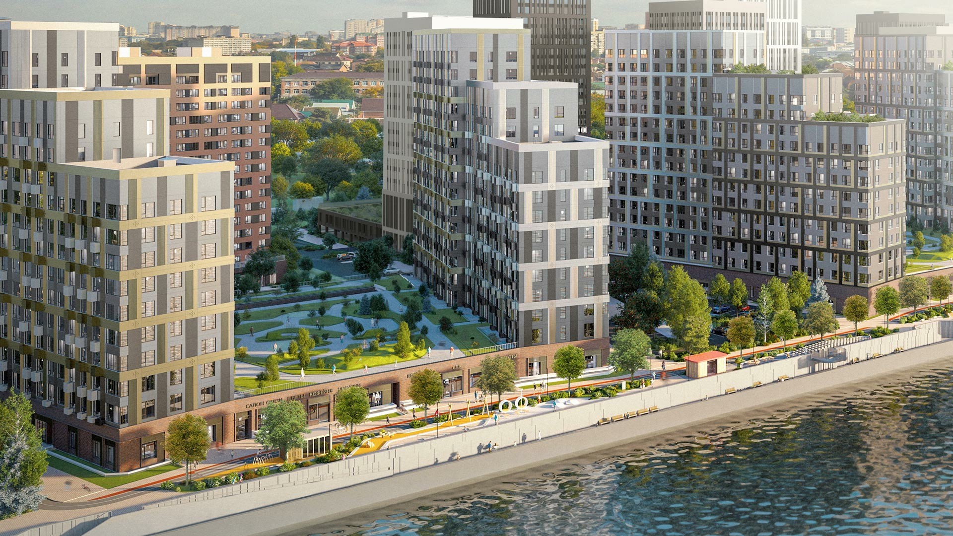 • На территории ЖК будут располагаться пляж и лодочная станция в конце набережной.