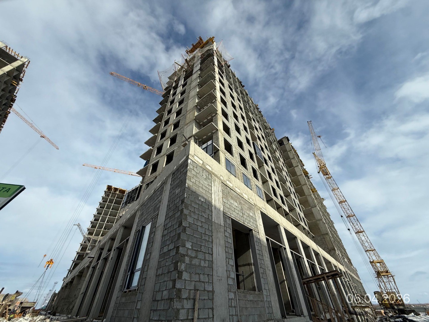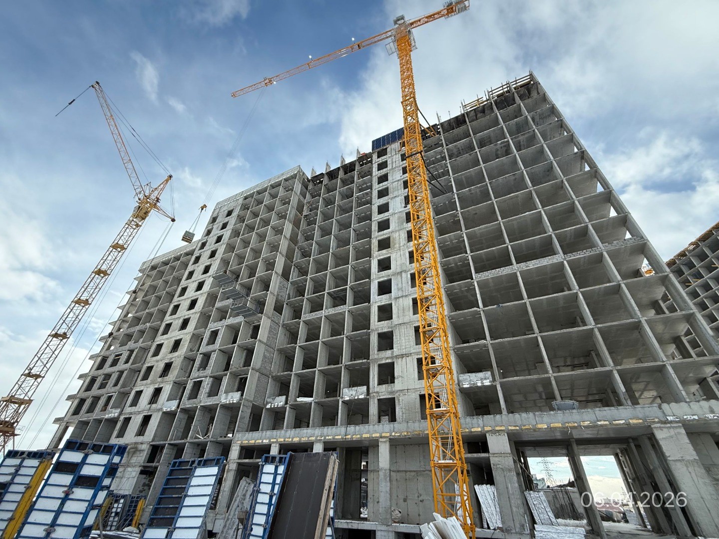 Дома уже набрали этажность, активно ведётся кладка — проект выходит на следующий этап и начинает формироваться в полноценный жилой квартал.