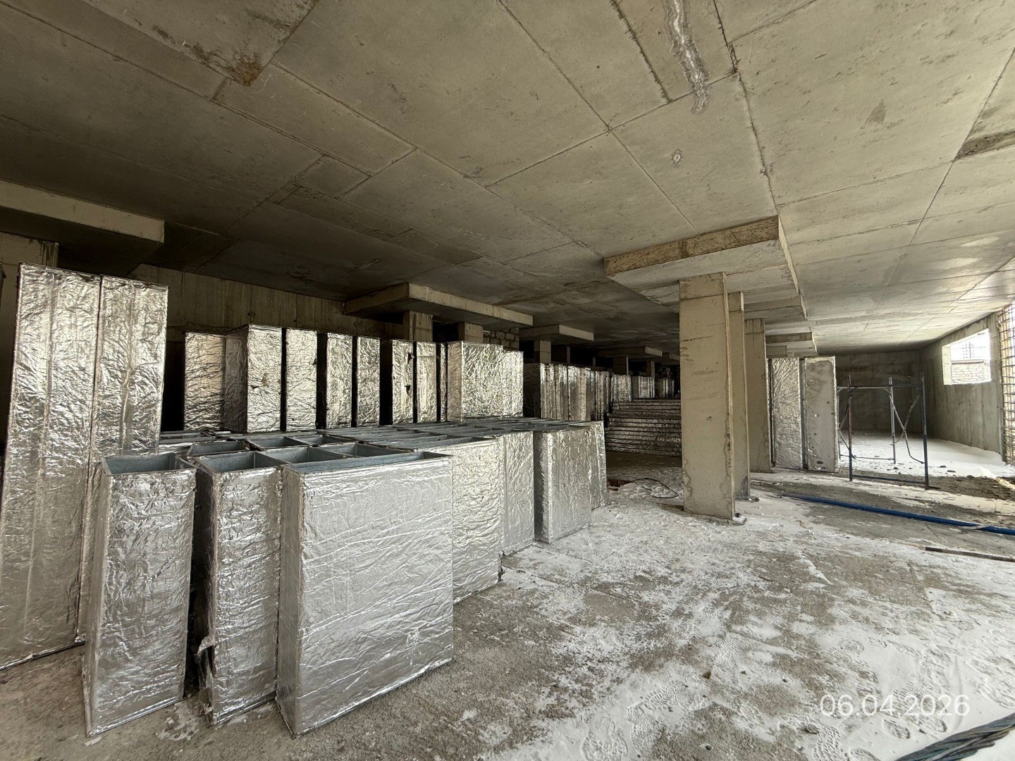 Параллельно ведётся монтаж воздуховодов вентиляции в секциях С-1 и С-2.