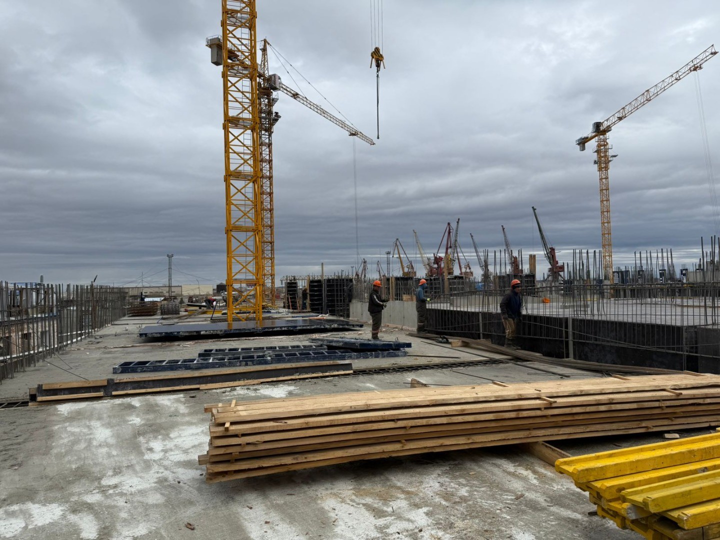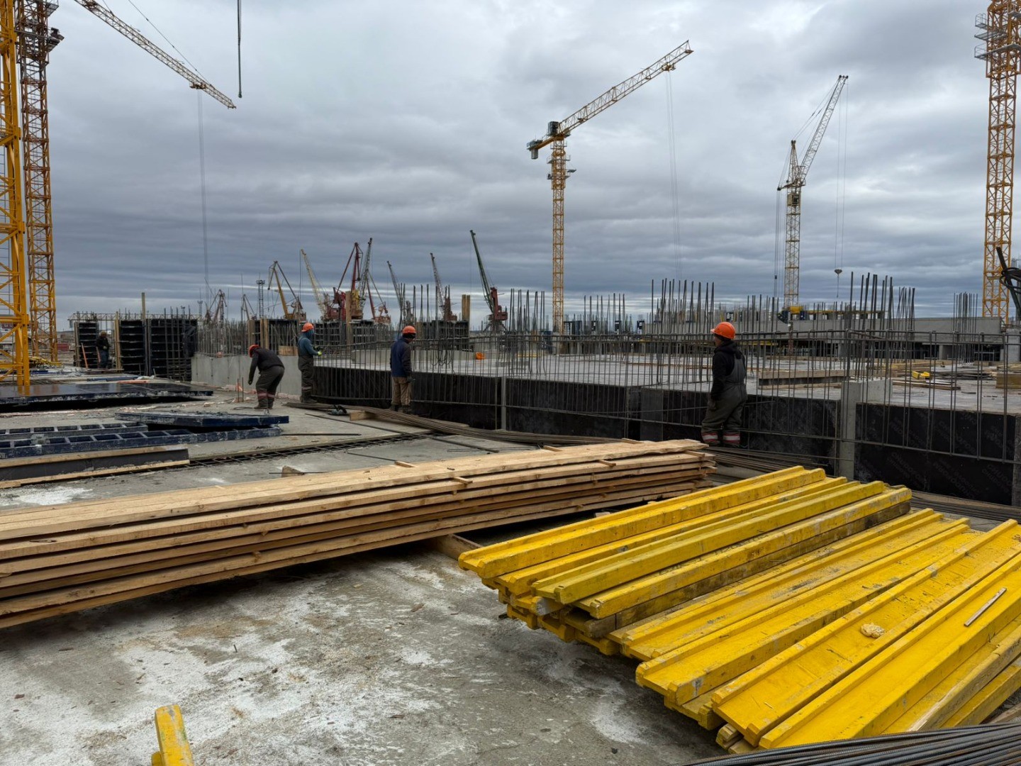 • Продолжается устройство монолитных стен стилобатной части на уровне 1-го этажа.