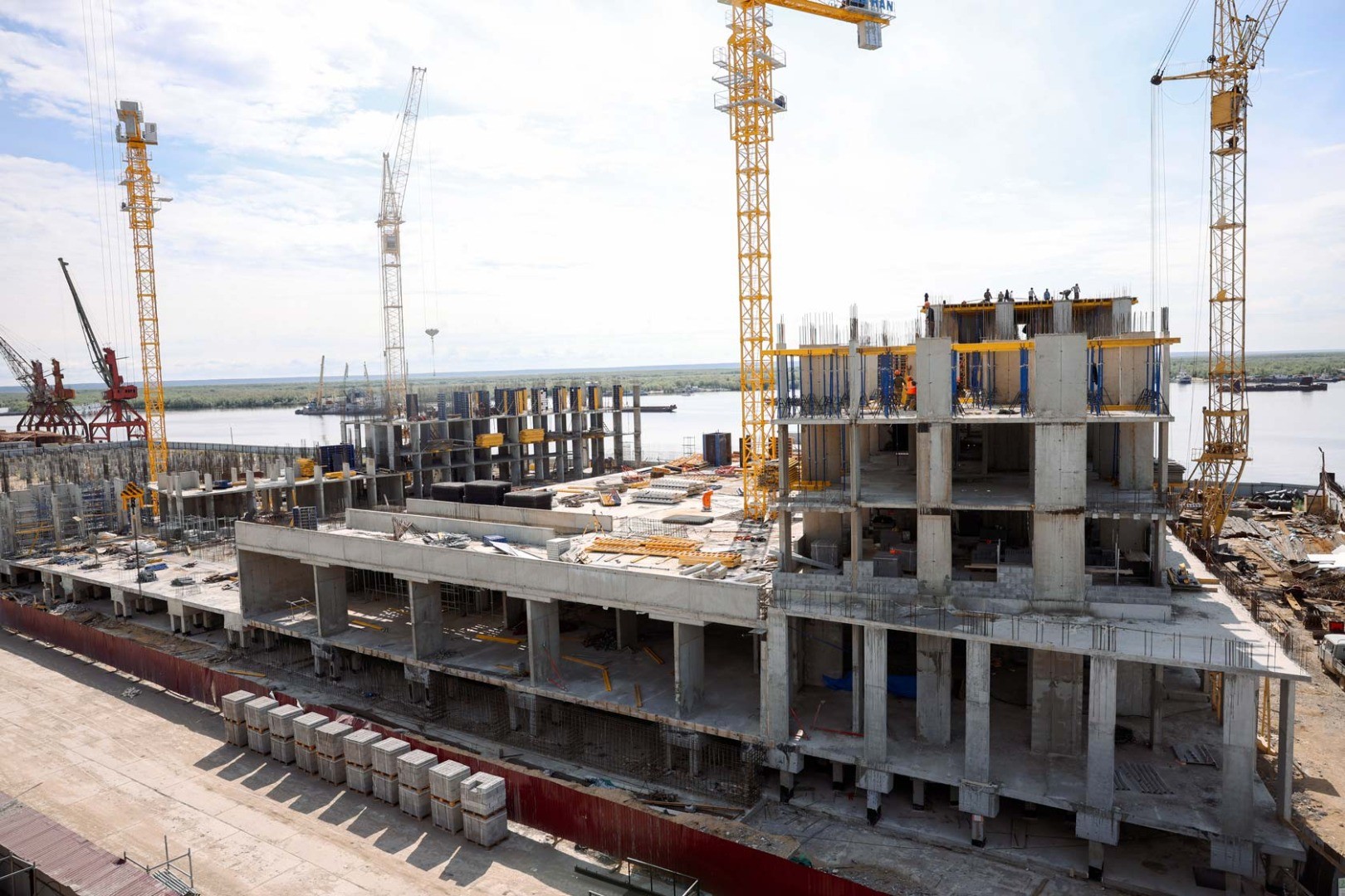 В июле на строительной площадке жилого квартала «Ленские высоты» продолжаются активные работы. Ведётся армирование ключевых конструктивных элементов на двух корпусах — Дом 1 и Дом 9.