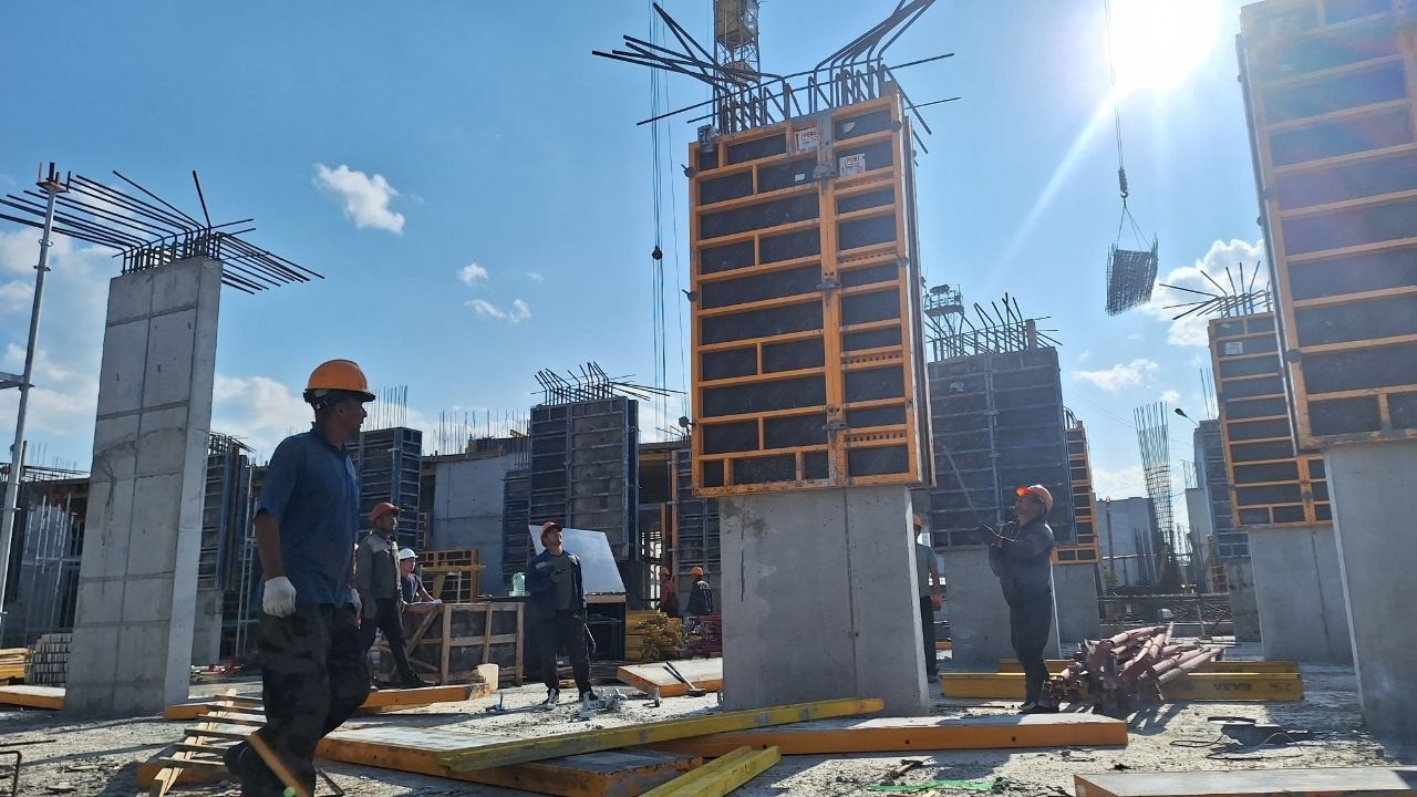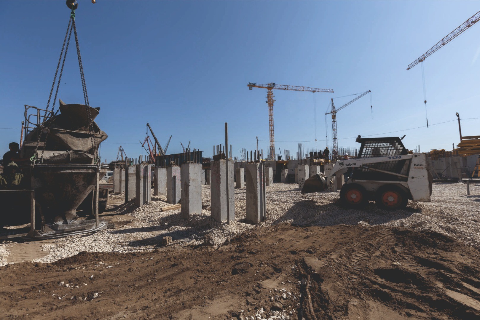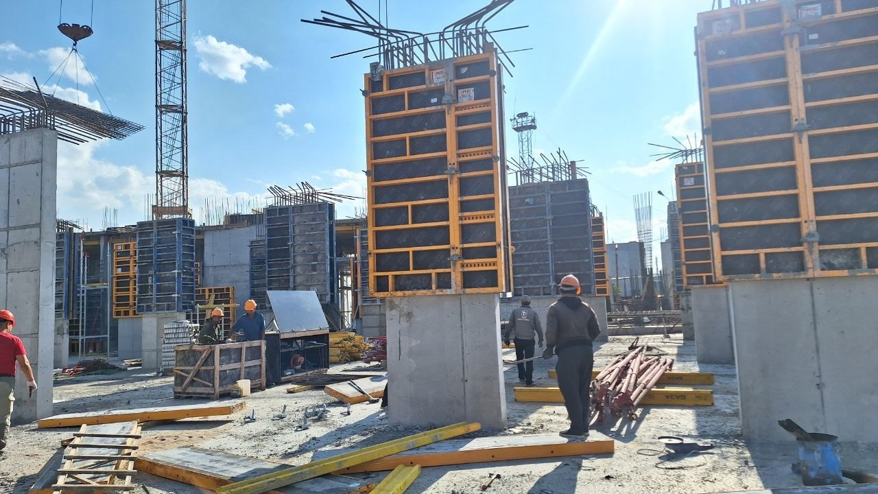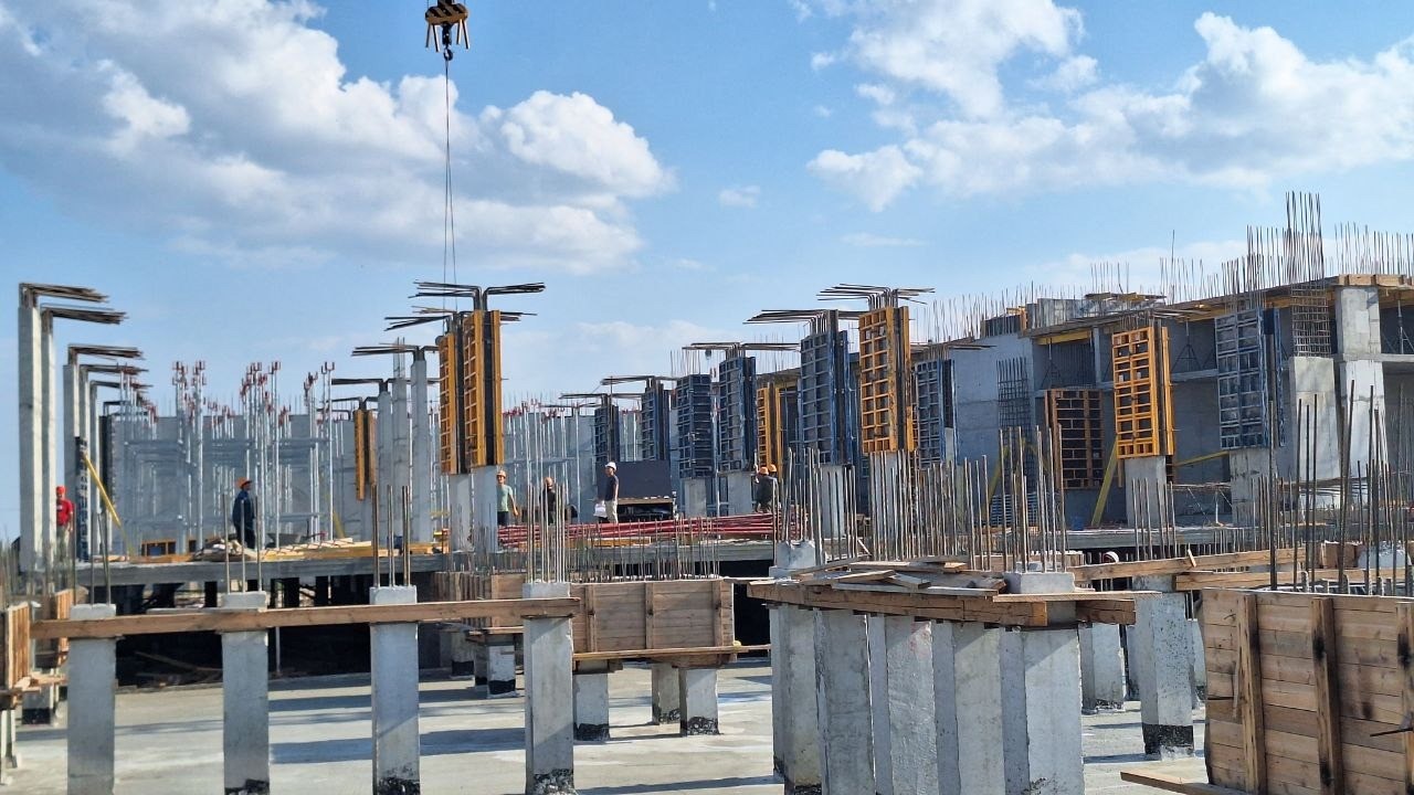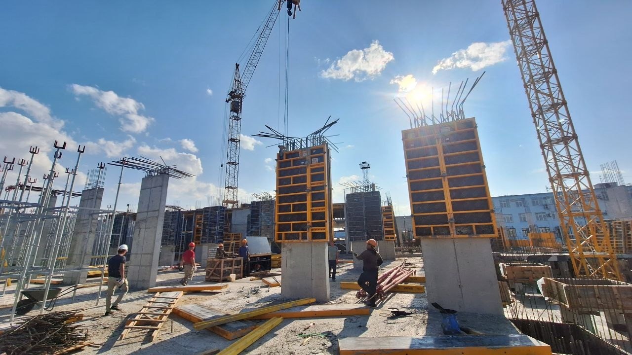 • А также продолжаются работы по устройству пилонов 1-го этажа и плит перекрытий 2-го этажа на Секции 1.