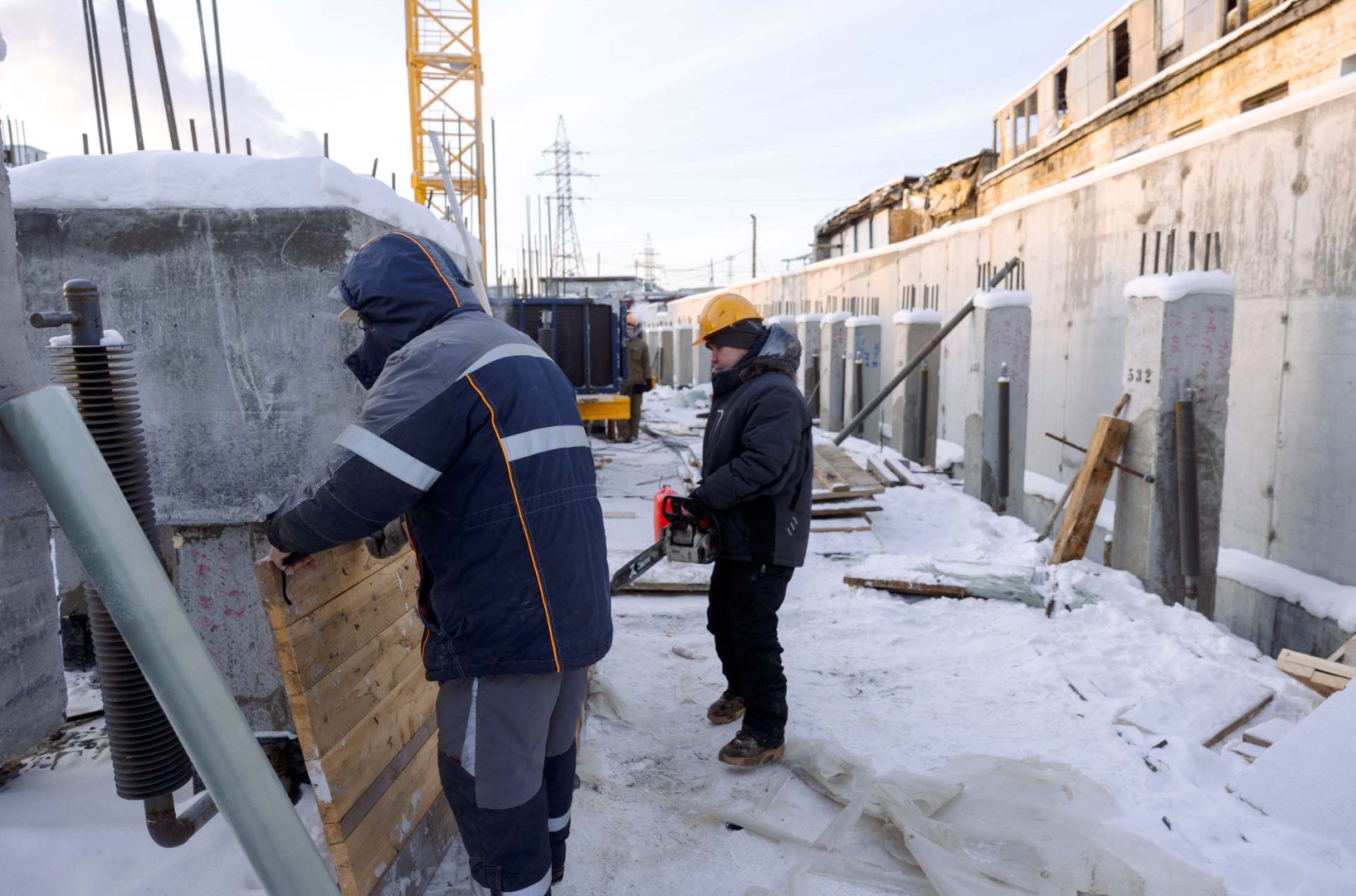 • ведутся работы по устройству опалубки стен лестничной клетки с электропрогревом на Секции 3;
