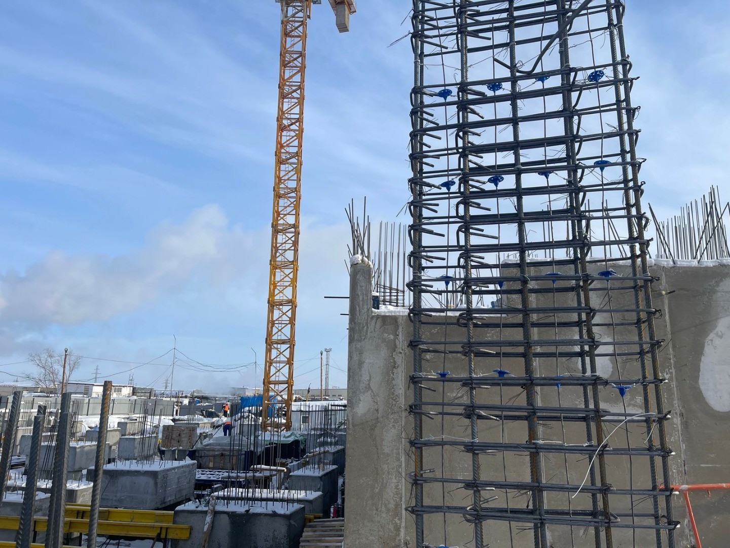 - Проводим работы по армированию, устройству опалубки и подготовке к приему бетона в пилоны Секции 4 (с применением электропрогрева бетона).