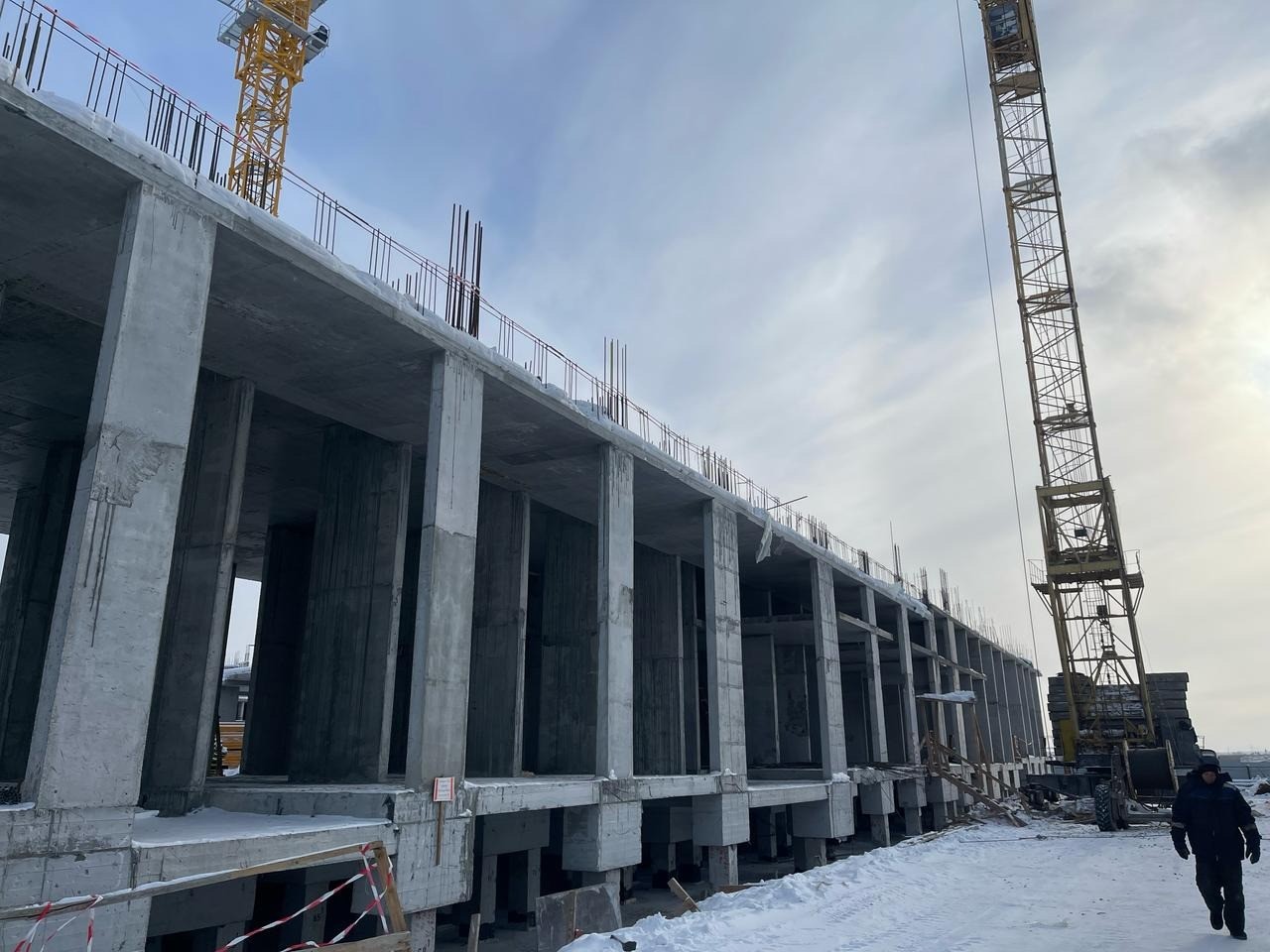 - Завершены работы по бетонированию участка цокольной плиты стилобатной части.