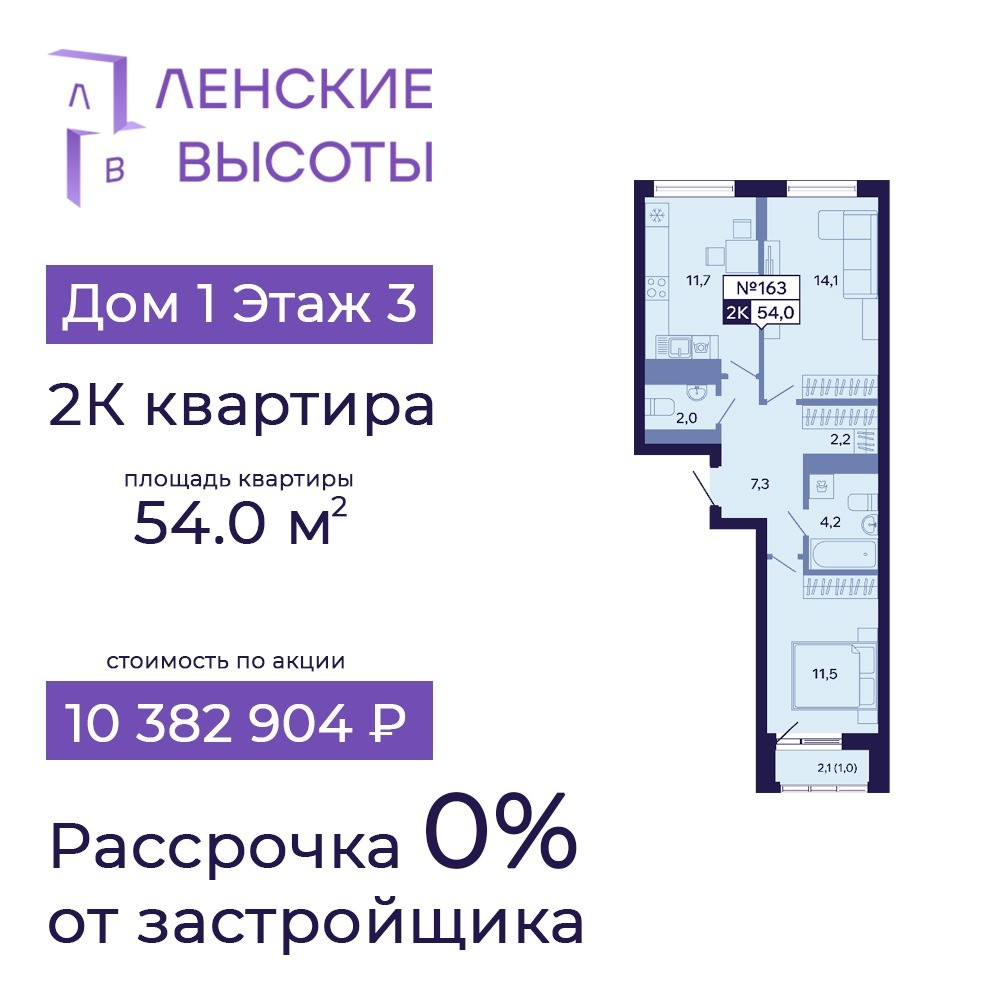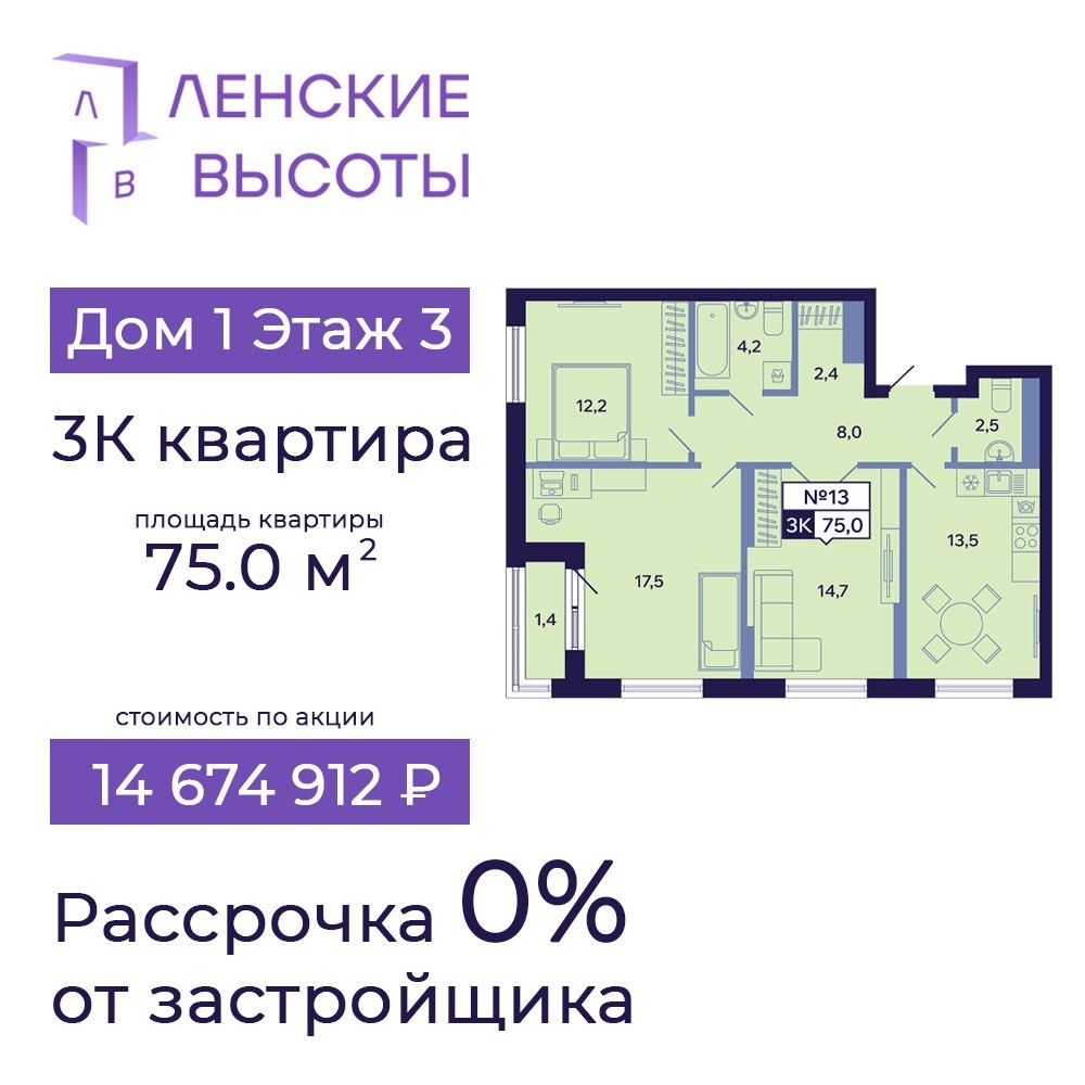🔥 Только до 25 марта 2025 года у вас есть возможность купить семейные 2- и 3-комнатные квартиры в ЖК «Ленские высоты» с беспроцентной рассрочкой от застройщика!